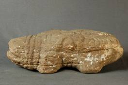 | Description / विवरण | Makara(tortoise), one of the ten incarnations of Visnu bearing Visnupada on its back.Side view. Next image is the top view of the same. |