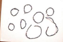 | Description / विवरण | A string of 263-271 beads in black and blue colour. Each bead has two white lines in circular. Agate material, oval, flat and round shaped. |