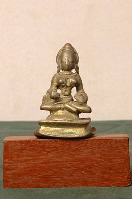 | Description / विवरण | Front and back of a two-armed, seated female divinity. |