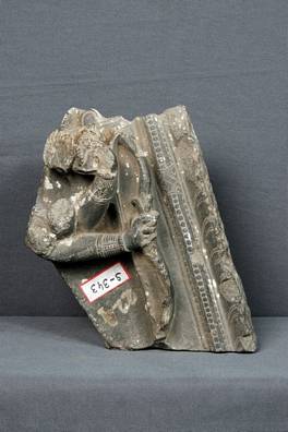 | Description / विवरण | Fragment of a stele probably representing a multi-armed Mahisasuramardini. |
