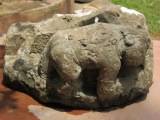 | Description / विवरण | A crouching male figure, kneeling and resting on elbow, looking at front having ear rings, armlet and curly hair. This type of crouching man generally found bellow the feets of a Nataraja Siva. |