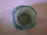 | Description / विवरण | This is a flower vase of sky blue colour. Corrugated shape. Rim is wavy. Circular flat base has a flower design. Oblique vertical groove are visible on it. |