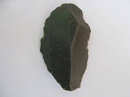 | Description / विवरण | The blade is directly prepared from the fluted core by using a single stroke.On the obverse side the fluting impressions are clear.Both side edges are sharp.The Reverse side is plain and contains the retouching marks on the tip of blade and a transverse breakage at bottom which gives the tools a shape of bruin. |