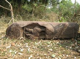 | Description / विवरण | The fragment of hero stone is a broken. Part of it is contains an image of elephant and elephant rider.The top is made like a vaulted roof.From the half vertically it is broken. Bottom contains the uneven broken impression. |