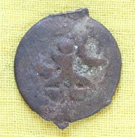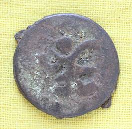 | Description / विवरण | The shape of the Coin is circular. Obverse -A Kushana type king standing with his right arm curved upwards and left arm curved downwards. Reverse -Probably, a standing figure of MAO or Moon-God with right arm curved upwards and the crescent above the left shoulder. The left arm is not visible. |