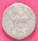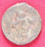 | Description / विवरण | The shape of the Coin is circular. Obverse -A Kushana type king standing with his right arm curved upwards and left arm curved downwards. Reverse -Probably, a standing figure of MAO or Moon-God with right arm curved upwards and the crescent above the left shoulder. The left arm is not visible. |