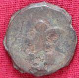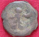 | Description / विवरण | The shape of the Coin is circular. Obverse -A Kushana type king standing with his right arm curved upwards and left arm curved downwards. Reverse -Probably, a standing figure of MAO or Moon-God with right arm curved upwards and the crescent above the left shoulder. The left arm is not visible |