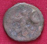 | Description / विवरण | The shape of the coin is circular. Obverse Kushana type king, standing with his right hand curved upwards and his left arm downwards. Reverse Probably the figure MAO or Moon-God with his right arm curved and the crescent above the left shoulder. |