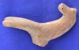 | Description / विवरण | Model probably of a horse. Only the frontal portion of the figurine is available with frontal legs and the head portion. Rests are missing. The eyes are represented by deep incisions, nostrils by holes. Five deep vertical lines are on both side of the neck. |