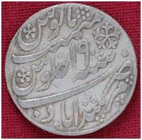 | Description / विवरण | The Shape of the Coin is circular. It was issued by the Mughal Emperor Shah Alam II from the mint of Murshidabad. Obverse Badshah Hami-deen Muhammad Sayah fazl-Shah Alam Dabr haft kishwar. Reverse - Maalus sikka 19 Julus Zar Murshidabad, Mint Mark-flower design. |