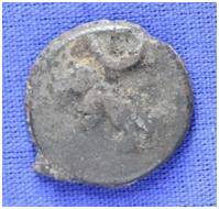 | Description / विवरण | The shape of the coin is circular. Obverse- Kushana type king standing with his right hand upwards and left arm extended Reverse- probably the figure of MAO or Moon God- with right arm curved up wards and the crescent above the left shoulder. |