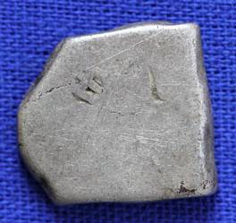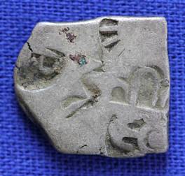 | Description / विवरण | The coin is an imperial type of punch marked coin. It is irregular in shape. Obverse Sun, six- armed wheel, three arched gate. Reverse Trisula symbol. Other symbols are indistinct. |