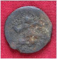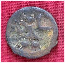 | Description / विवरण | The shape of the coin is circular. Obverse-Kushana type king, standing with his right hand curved up wards and left arm extended. Reverse- Probably the figure of MAO or Moon-God with his right arm curved upwards and the crescent above the left shoulder. |