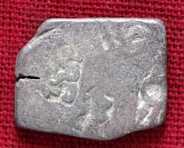 | Description / विवरण | The coin is irregular in shape. Obverse Tree, sun, other symbols are indistinct. Reverse Blank. |