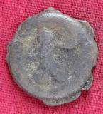 | Description / विवरण | The shape of the coin is circular. Obverse Kushana type king, standing with his right hand curved upwards and his left arm e xtended. Reverse Probably the figure of MAO or Moon-God with his right arm e xtended downwards and the left hand e xtended upwards. |