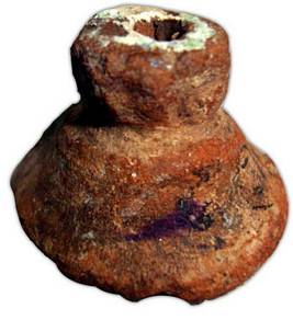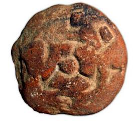 | Description / विवरण | A Terracotta seal depicted with three anchors around the central disc and other symbols on the periphery. |