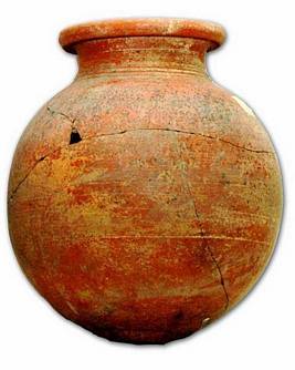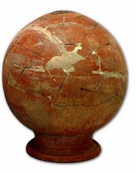 | Description / विवरण | Broken red ware pot with sagger base, convex neck, splayed out thickened rim, concentric circles below the neck. |