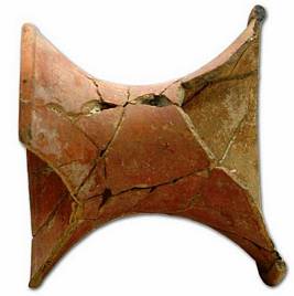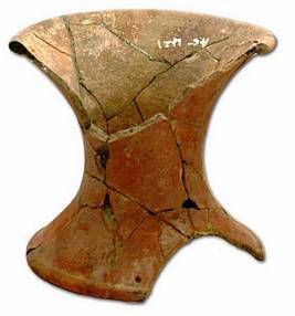 | Description / विवरण | Broken red ware stand with flaring internally collared rim, elongated concave sides and flaring externally collared rim base, of coarse to medium fabric it is treated with slip on exterior and interior up to the rim portions, relatively straight sides. Deep groove below the rims on both ends, upper and lower portions are broken and missing. |