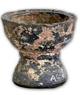 | Description / विवरण | Black ware dhoop stand, it is hallow inside and has circular openings on both sides. A prominent groove on the middle of the body. |