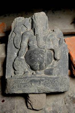 | Description / विवरण | Four-armed Ganesha. All the arms are now broken. His vahana (vehicle) mouse is seen on the pedestal. |