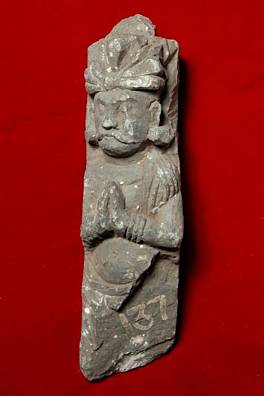 | Description / विवरण | Fragment of a larger composition. Male figure probably in adoration of Buddha. |