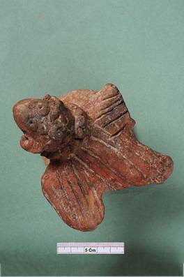 | Description / विवरण | Terracotta bird with outspread wings. It stands on round pedestal. |