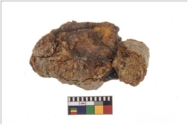 | Description / विवरण | A partially broken specimen of iron Knife. It is convex shaped with partially broken end. It is rusted. |
