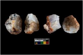 | Description / विवरण | There are n-4 of intact cores made up of Chalcedony. There are multidirectional irregular dominant scar pattern on both dorsal and ventral face of the cores. |