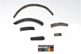 | Description / विवरण | A group of three monochrome opaque plain black coloured fragments glass bangle . |