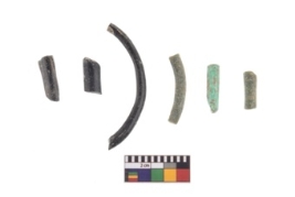 | Description / विवरण | A group of three monochrome opaque plain black and green coloured fragments glass bangle . |