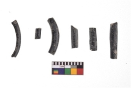 | Description / विवरण | A group of three monochrome opaque plain black coloured fragments glass bangle . |