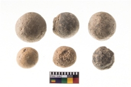 | Description / विवरण | Five terracotta marbles, circular in shape two of which are damaged. |