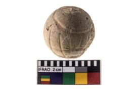 | Description / विवरण | Decorated bead of terracotta, devoid of perforation. |
