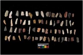 | Description / विवरण | There are n 70 microliths, among them 6 made up of quartz, 12 are chalcedony, 52 are chert, among them some are blades, points and triangles. Mostly they are intact. |