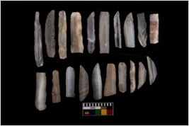 | Description / विवरण | A set of 20 intact microlithic blades. Within this assemblage, 18 are made up of chalcedony and 2 are made up of chert. All these blades have retoching and sharp edges. |