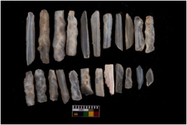 | Description / विवरण | A set of 20 intact microlithic blades. Within this assemblage, 19 are made up of chalcedony and 1 is made up of chert. All these blades have retoching and sharp edges. |