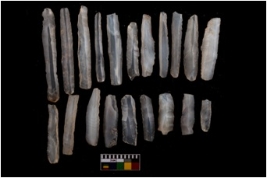 | Description / विवरण | A set of 20 intact microlithic blades, made up of chalcedony. All these blades have retoching and sharp edges. |