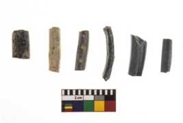 | Description / विवरण | A group of monochrome opaque plain black and blue coloured glass bangle . One fragment is decorated with yellow coloured dots on outer surface of the bangle. |