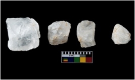 | Description / विवरण | There are n-4 of Cores. All are made of Quartz.They are fully fluted cores, 1 with trace of Crested ridge flake. |