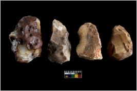 | Description / विवरण | There are n-4 of intact cores. Out of them 2 are made up of Chalcedony, 1 is made up of Chert and 1 is made up of Agate. There are multidirectional irregular dominant scar pattern on both dorsal and ventral face of the cores. |