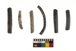 | Description / विवरण | A group of monochrome opaque plain black coloured glass bangle . One bangle fragment is decorated with grooves and ridge on the outer surface. |