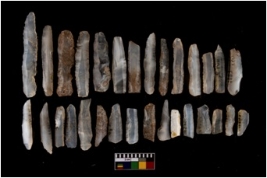 | Description / विवरण | A set of 30 intact microlithic blades, made up of chalcedony. All these blades have retoching and sharp edges. |