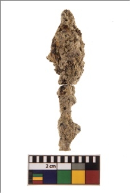 | Description / विवरण | A specimen of iron nail broken from top and tapering ends. It is rusted. |