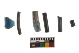 | Description / विवरण | A group of monochrome opaque plain black and blue coloured glass bangles. |