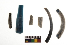 | Description / विवरण | A group of monochrome opaque plain black coloured glass bangle . One fragment is thick decorated with parallel grooves and ridged on the outer surface. |