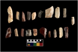 | Description / विवरण | There are a number of blades n - 21 . Among these n -1 are made of Chalcedony and n - 20 are made from Chert. n - 1 is having some evidence of retouching . REst are partially broken and are devoid of retouching and backing. |
