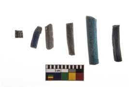 | Description / विवरण | Two fragments are monochrome opaque plain black coloured glass bangle . Four fragments are blue in colour. |