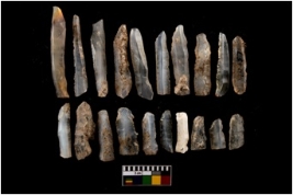 | Description / विवरण | A set of 20 intact microlithic blades, made up of chalcedony. All these blades have retoching and sharp edges. |