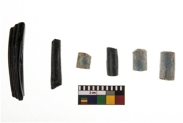 | Description / विवरण | Group of glass bangles which are opaque plain black and blue in colour. |
