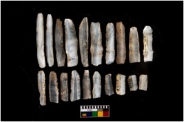| Description / विवरण | A set of 20 intact microlithic blades, made up of chalcedony. All these blades have retoching and sharp edges. |